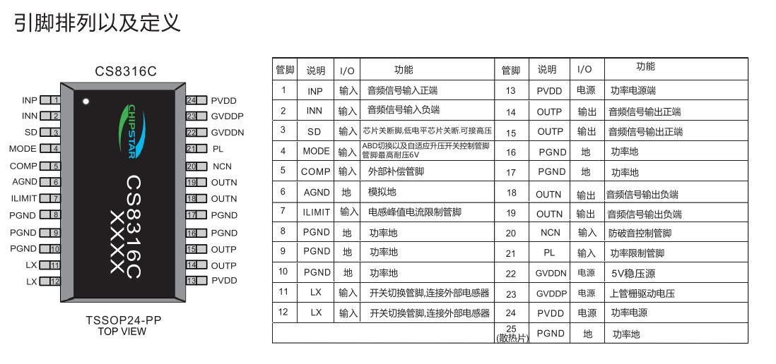 CS8316引脚定义图: