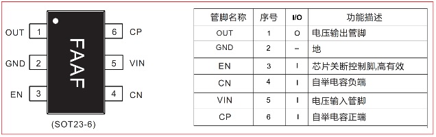 本电路采用新的电荷泵架构,保证零负载情况下工作在恒定的开关频率,并同时减少输入和输出纹波。该电路具有热保护功能,能承受从VOUT到GND的持续短路。内置的软启动电路能防止启动时产生过大的浪涌电流。较高的开关频率,可以使用小型的陶瓷电容。低电流待机电流,小于1uA。