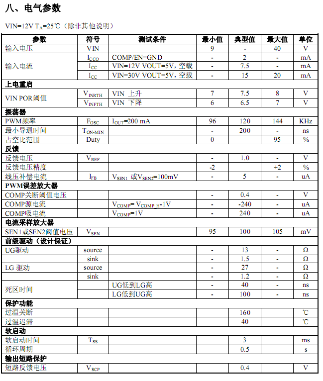 l 输入欠压保护(最小7 V,典型7.5V,最大8V)