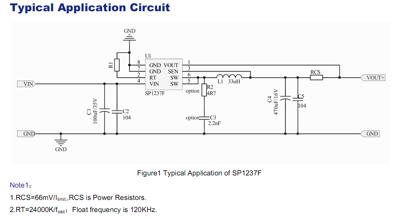 The SP1237F is suitable for the DC/DC switching power applications when requested the current limit function.