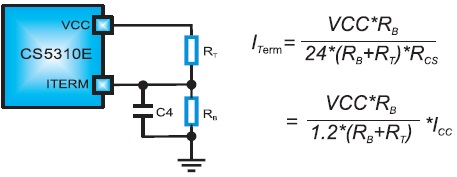 CS5310E具有终止电流可编程功能。通过设置不同的外部分压电阻, 可以很方便的调节充电终止电流的大小。ITERM端的电压可以在60mV-600mV之间可调,终止电流
