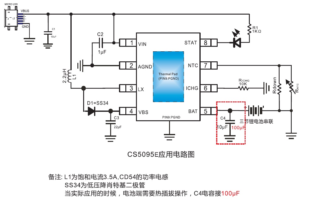 概要CS5095E是一款5V输入,最大1.2A充电电流,支持三节锂电池串联应用 ,锂离子电池的升压充电管理IC。CS5095E集成功率MOS,采用异步开关架构,使其在应用时仅需极少 的外围器件,可有效减少整体方案尺寸,降低BOM成本。CS5095E的升压开关充电转换器的工作频率为500KHz,转换效率为90%。CS5095E输入电压为5V,内置自适应环路,可 智能调节充电电流,防止拉挂适配器输出可匹配所有适配器。